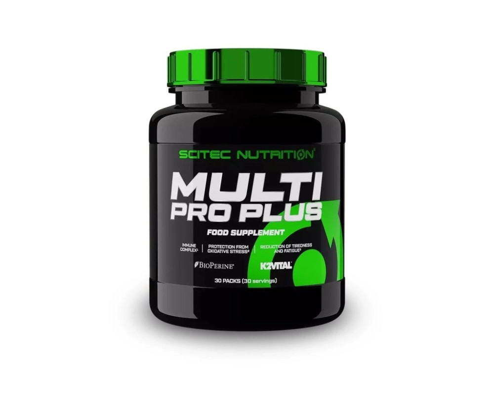 Scitec Nutrition Multi Pro Plus je komplexný all-in-one výživový doplnok pre každodennú podporu zdravia. Obsahuje vysokokvalitné multivitamíny, minerály, omega-3 mastné kyseliny, lecitín a rastlinné extrakty, ktoré posilňujú imunitný systém, podporujú činnosť svalstva, štítnej žľazy a nervovej sústavy.